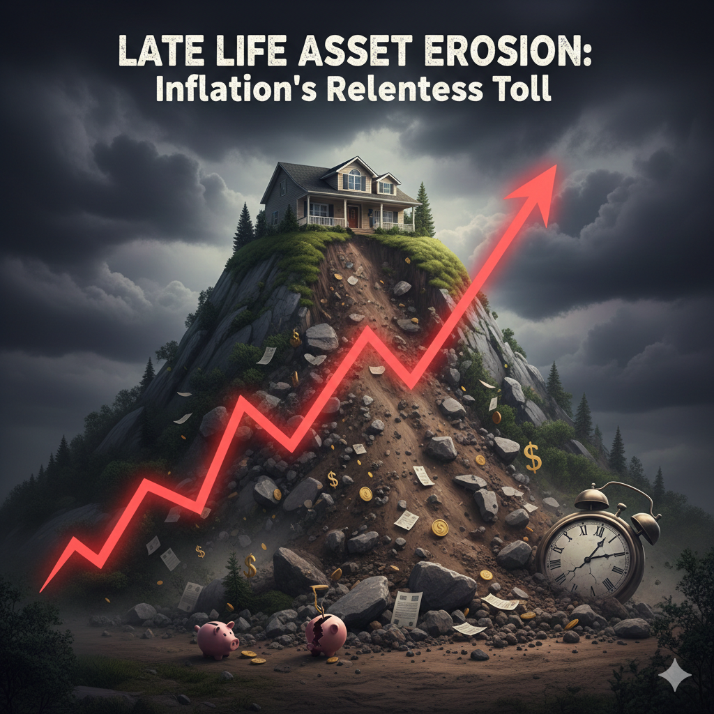 Late life asset erosion is the rapid depletion of savings, home equity, and investments during the final years of life, usually triggered by health decline, loss of independence, or widowhood. In Canada, this often shows up when a senior shifts from relatively low‑cost, independent living to needing paid support at home, assisted living, or long‑term care. The problem isn’t just higher bills; it’s that those bills arrive precisely when it’s hardest to increase income or make major financial changes.ifs-asf+2